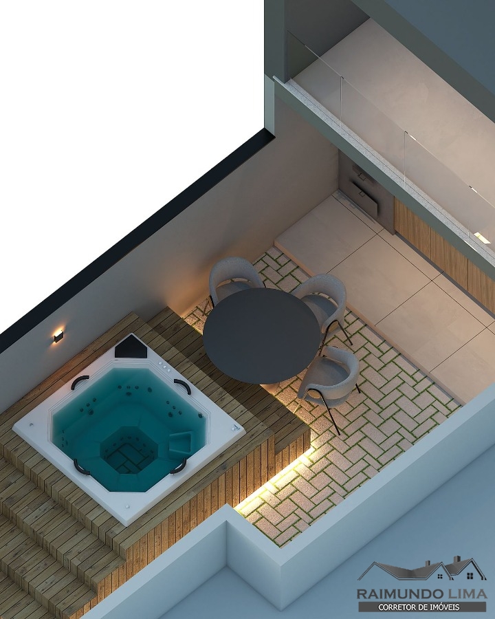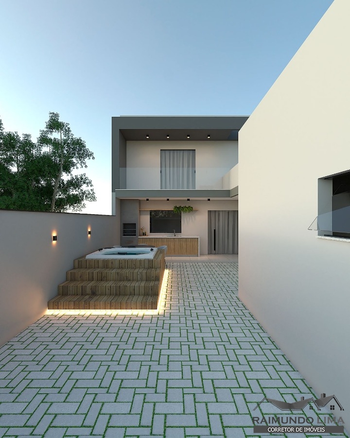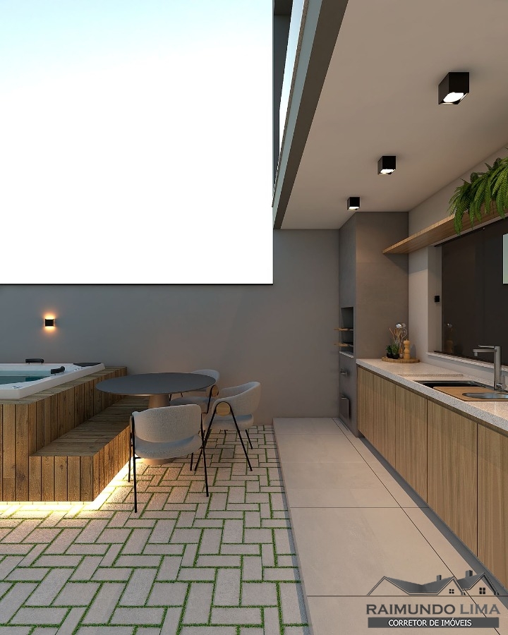 São 4 quartos, 3 banheiros, sala de jantar e estar, cozinha planejada com sanca e iluminação, lavanderia, área Gourmet com churrasqueira, instalação hidráulica pronta para Jacuzzi. Garagem para 4 carros